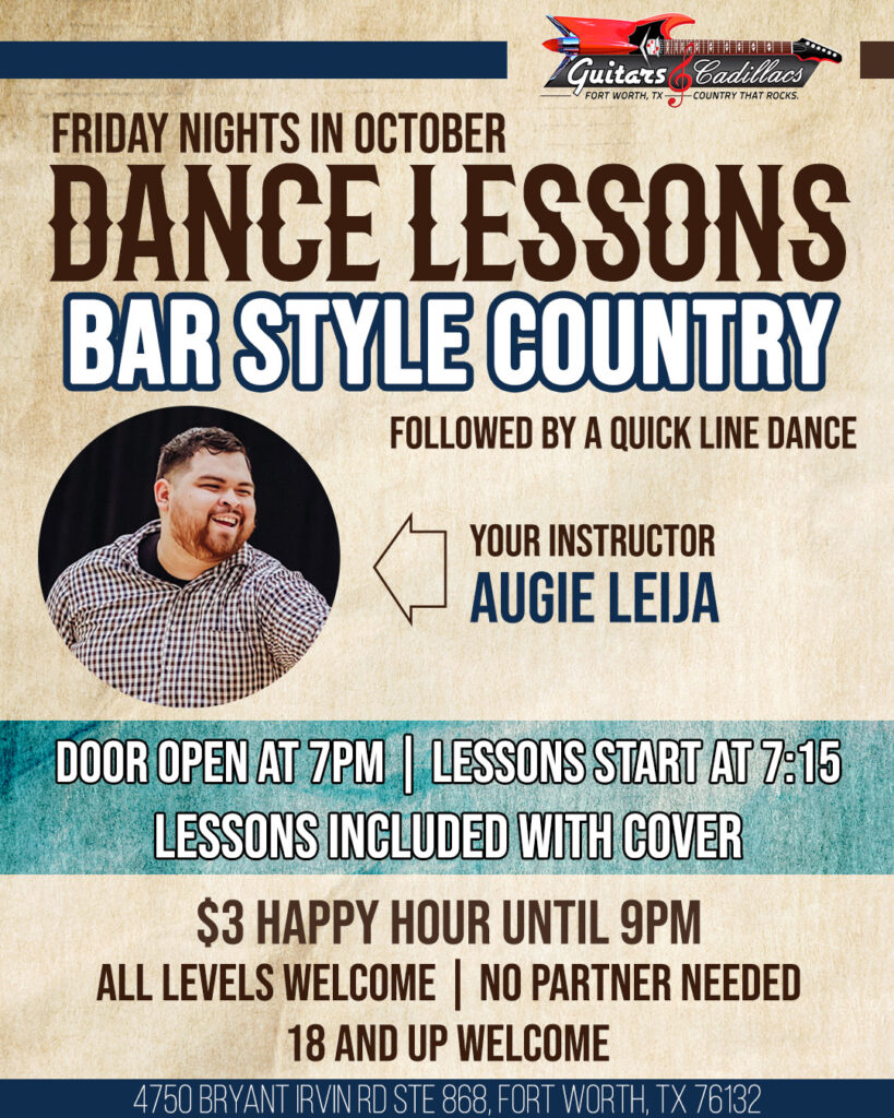 Join us Friday nights with Augie for a new dance lesson series, “bar style” country (what many refer to as two step). Whether you’re a seasoned pro or a newbie, Augie has tips and tricks for all levels of dancers. Put on your boots, and let’s tear up the dance floor. Don’t worry, we will still throw in a quick line dance tutorial at the end of the lesson for those who still want to learn.