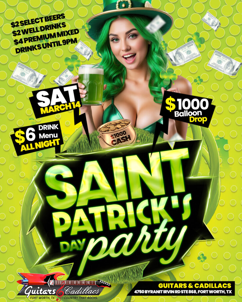 Grab your friends and come celebrate St. Patrick’s Day weekend with us at Guitars & Cadillacs! ![]()